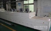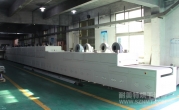 2、外形尺寸(約):總長24000mm*總高1690mm*總寬1220mm,地面到網(wǎng)帶的高度為850mm,爐體內(nèi)進料高度為150mm;烘干部分總長14000mm,分7段獨立控溫(每段4個測溫熱電偶),每段2000mm。冷卻段長4000mm,UV預(yù)留區(qū)長2000mm,前后緩沖區(qū)各長500mm,進出料部分長1500mm, 爐體前后裝有急停開關(guān)。