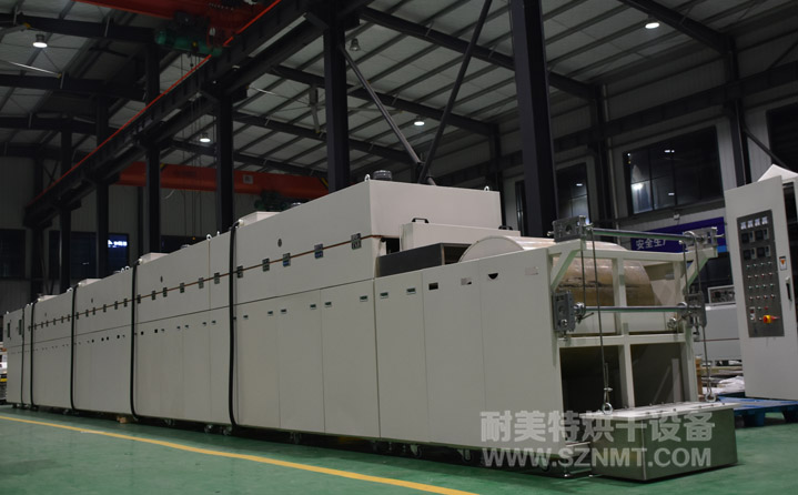 2、外形尺寸(約):總長16500*高2000*寬1230mm;進料部分長2000mm,烘干部分長12000mm,分為4段,每段3000mm,出料部分1000mm;輸送帶離地高1400±20mm;